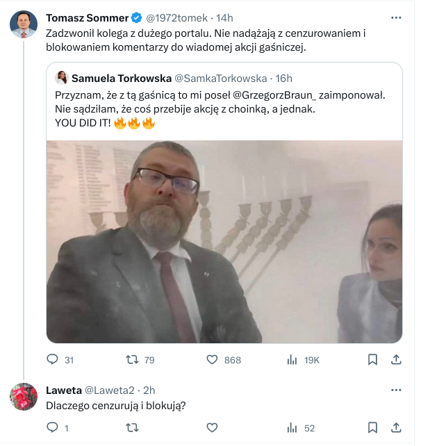 Polski internet został zalany falą komentarzy po działaniu posła Grzegorza Brauna z dnia 12 grudnia 2023 roku. Tego dnia, używając gaśnicy, poseł zgasił palące się świeczki na holu Parlamentu RP. Jak użytkownicy serwisu społecznościowego Twitter ocenili to wydarzenie? Okazuje się, że w większości pozytywnie choć forma dokonania protestu była istnie artystyczna:
